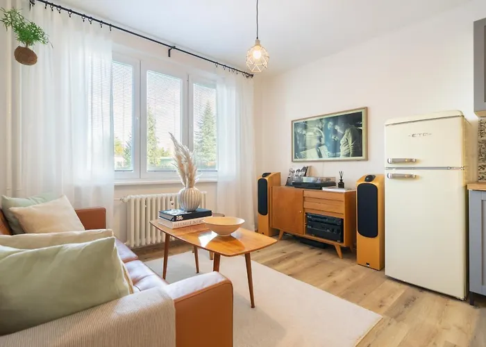 Located within 15 minutes' walk of Botanicka zahrada Rakovnik, which offers the thrill of discovering something beautiful, the 37 m^2 Stylish Retro Apartment includes a barber shop. At the apartment, Wi-Fi and parking are also provided.